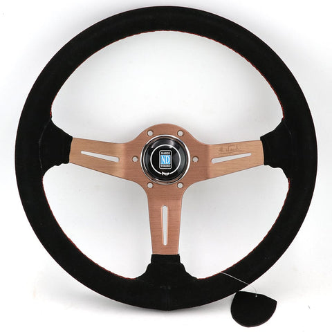 Aftermarket 14 inch Steering Wheel Deep Dish Red Suede