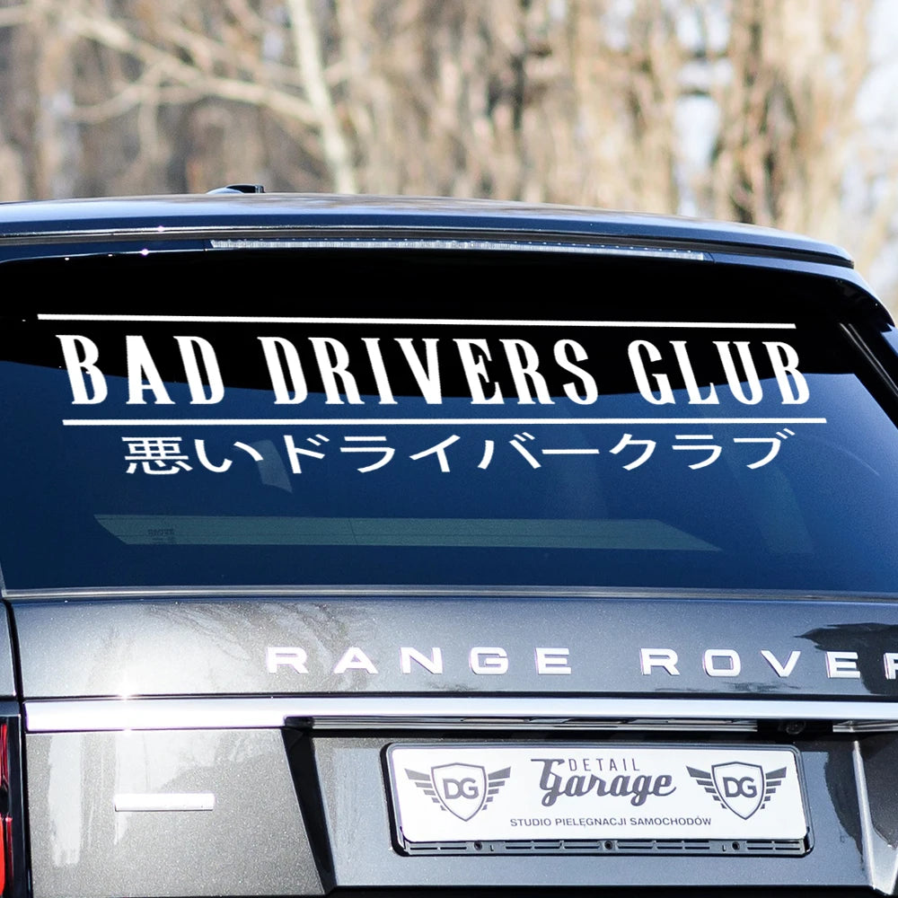 Slap this BAD DRIVERS CLUB kanji banner across your windshield and own your driving style. Bold Japanese characters make a statement that says you're part of the underground tuner scene. High-quality vinyl construction withstands highway speeds and harsh weather while maintaining that crisp, clean look. Perfect for JDM enthusiasts who aren't afraid to show their attitude. Easy application, maximum impact.