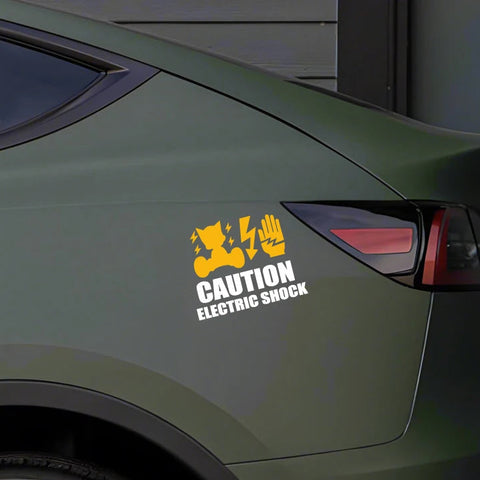 CAUTION ELECTRIC SHOCK Car Sticker Slap this bold warning decal on your ride and let everyone know you're running serious electric power. Perfect for EV builds, electric motor swaps, or just flexing that high-voltage setup. High-quality vinyl construction withstands weather, UV rays, and highway speeds. Make a statement while keeping spectators informed—this sticker combines safety messaging with undeniable street cred. Ideal for tuners pushing the limits of electric performance.