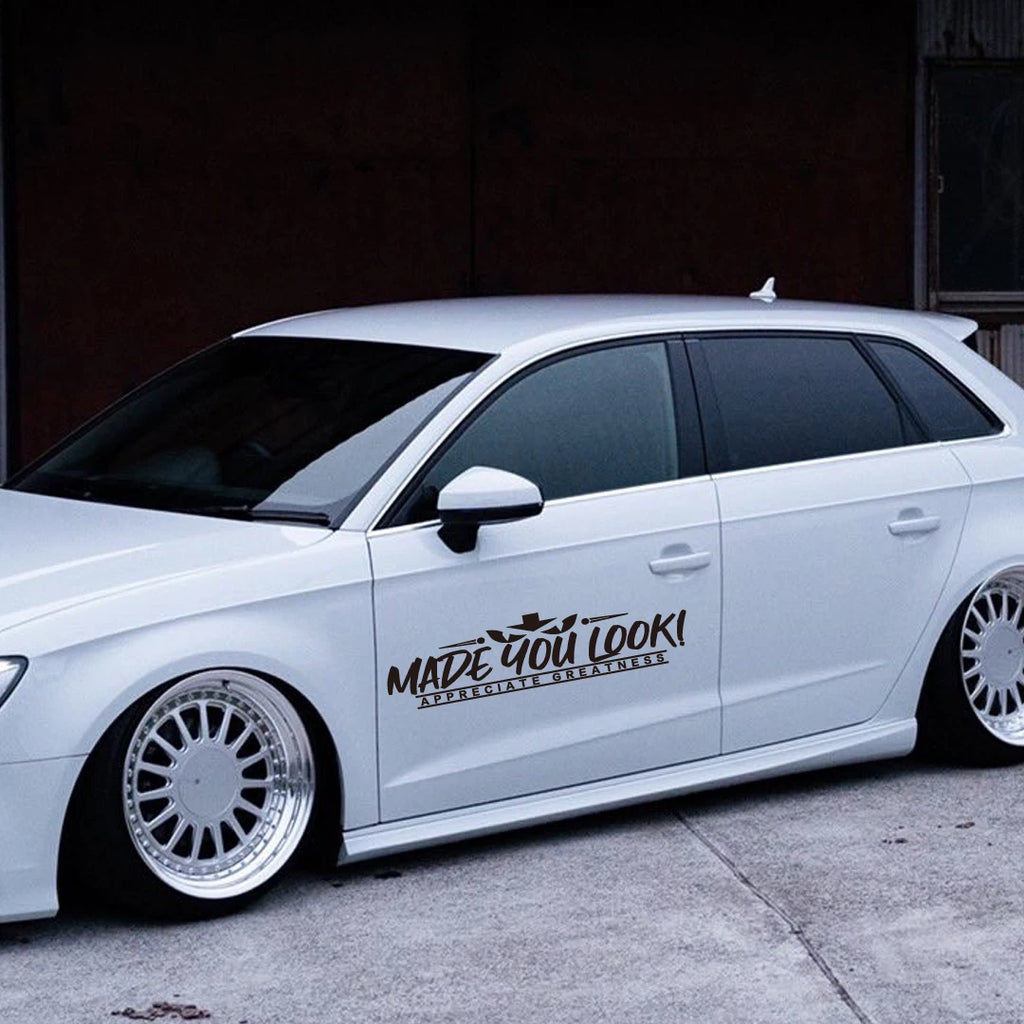Proudly display your appreciation for greatness with the MADE YOU LOOK! APPRECIATE GREATNESS Sticker Decal. Perfect for any JDM car tuner, this sticker lets everyone know that you have an eye for top-notch quality. Made with high-quality materials, this sticker is durable and long-lasting, making it a great addition to your car.