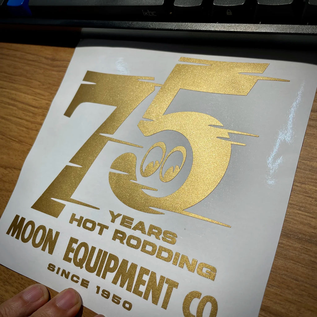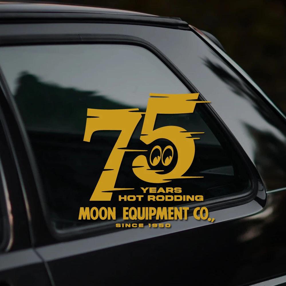 Celebrate seven and a half decades of legendary MOON equipment with this exclusive 75th Anniversary sticker. Perfect for JDM enthusiasts and hot rod builders who respect the heritage of quality performance parts. This durable vinyl decal showcases iconic MOON branding and commemorates their storied legacy in the automotive world. Whether you're repping your build or honoring classic tuning culture, this sticker is a must-have for any serious gearhead's collection. Apply it to your ride, toolbox, or garage wall and rep the lineage that built the scene.