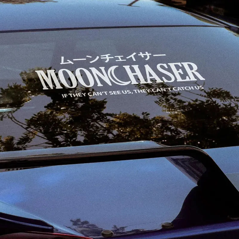 Transform your windshield into a statement piece with the MOON CHASER banner decal. This bold, eye-catching sticker captures the essence of JDM culture with its sleek design and premium finish. Perfect for car enthusiasts who want to showcase their passion for the scene. Easy to apply and built to withstand the elements, this decal adds instant character to any ride. Make your whip unmistakably yours.