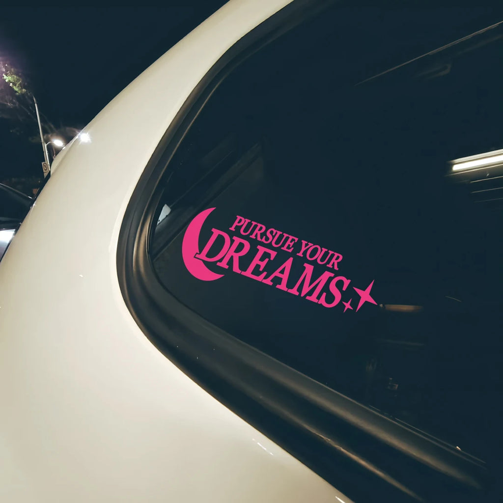Slap this PURSUE YOUR DREAMS sticker on your ride and let everyone know what you're about. Perfect for your windshield, bumper, or anywhere you want to rep your hustle mentality. High-quality vinyl construction withstands weather, UV rays, and the open road. Whether you're building your dream car or chasing your goals, this decal keeps your motivation visible. Clean aesthetic that complements any JDM setup without the extra flash.