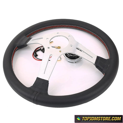 Silver 14inch Italy ND Lightweight Aluminum Steering Wheel Drift Sport Real Leather