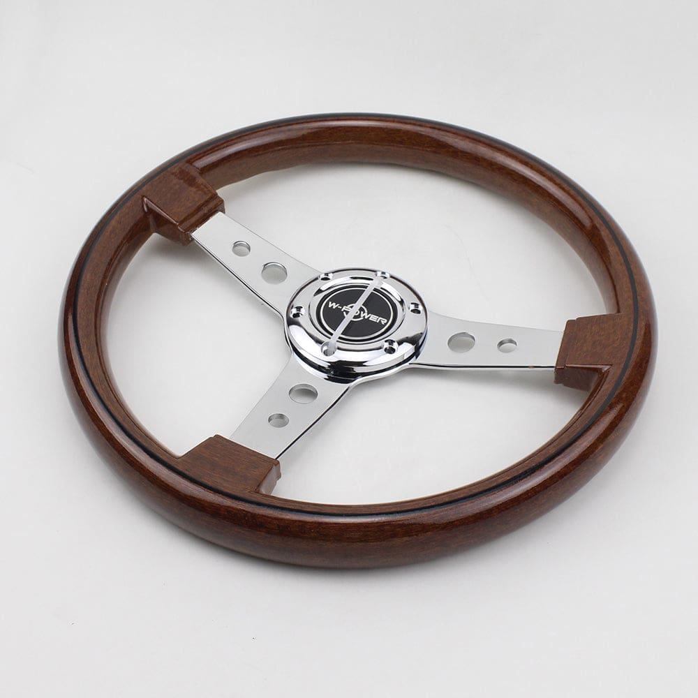 W-Power Steering Wheel Wood Grain Classic Flat 14"